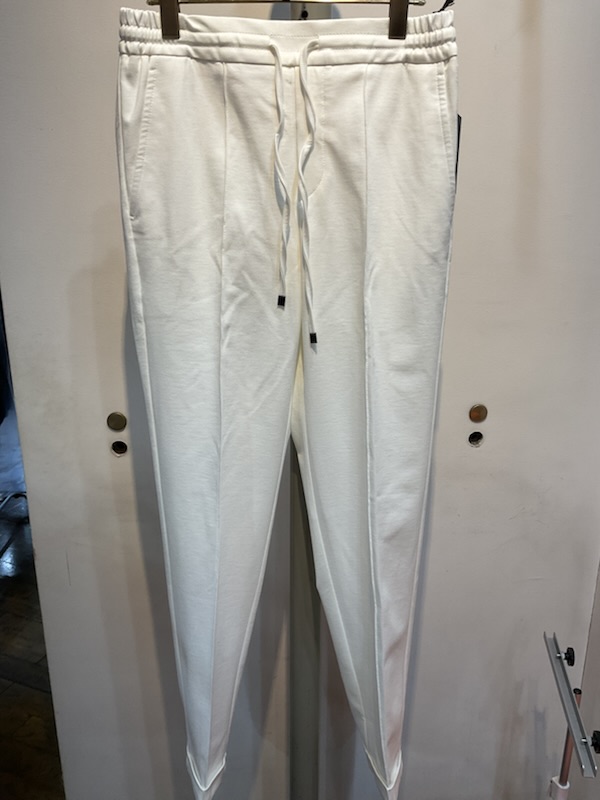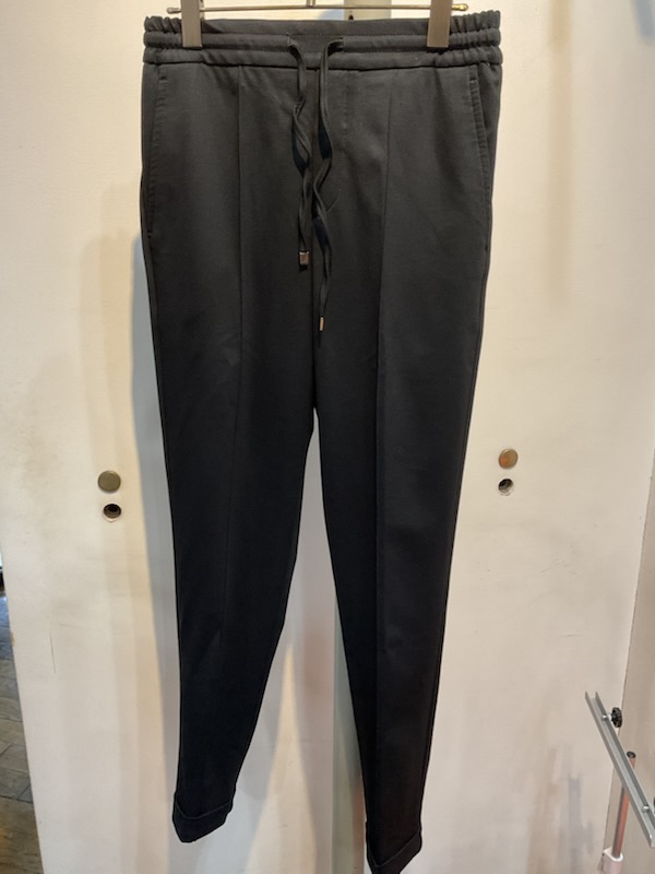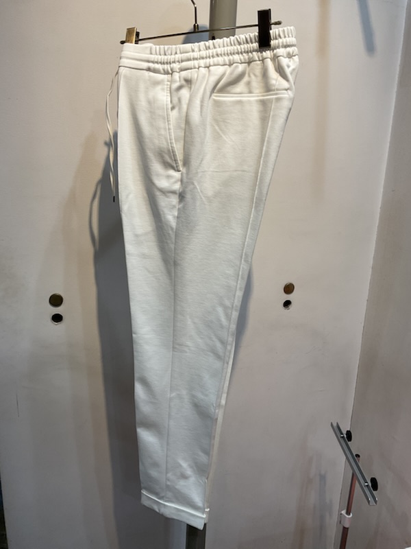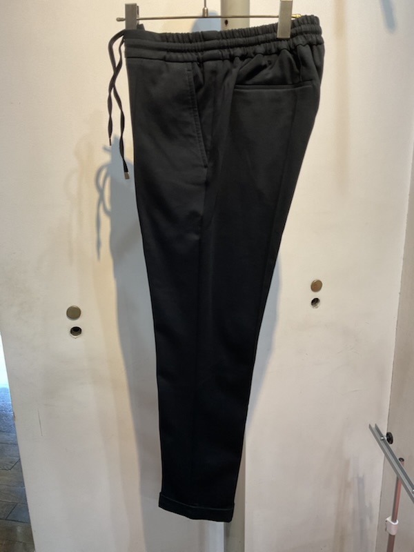 シルエットは前後に永久クリース、ウエストにシャーリング加工、ドローコード付き、裾のダブル仕上げによって足の甲にあたることもなくイージーパンツなのに品の良いスタイルに見える納得のモデルに仕上がっています。