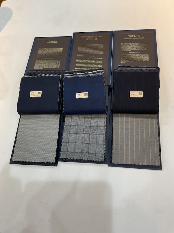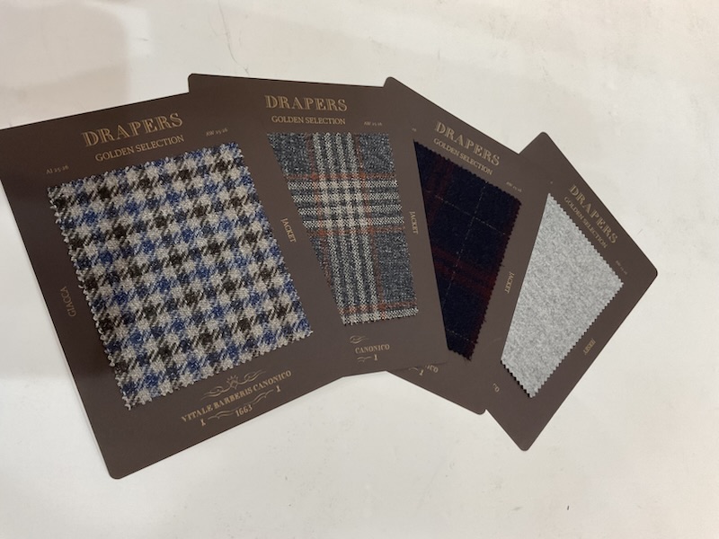 などベーシックから最近のトレンドまで値頃感のある生地からフェア期間中だけのスペシャルな生地を揃えてスーツをはじめジャケット、スラックスをお客様の好みに合わせてお作りいただけます。